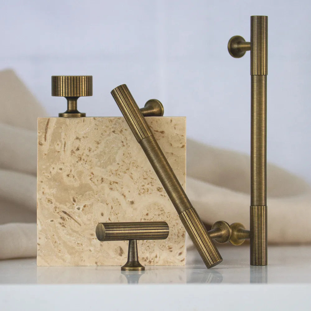 Thorndon 50mm Solid Brass Grooved T Handle - Antique Brass Finish