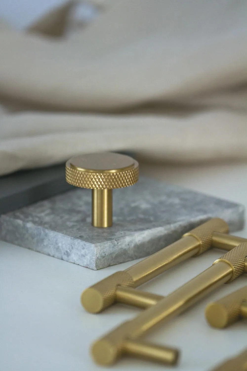 Cabinet Knob Solid Brass Brushed Finished 35mm with Knurled Grip - Henley